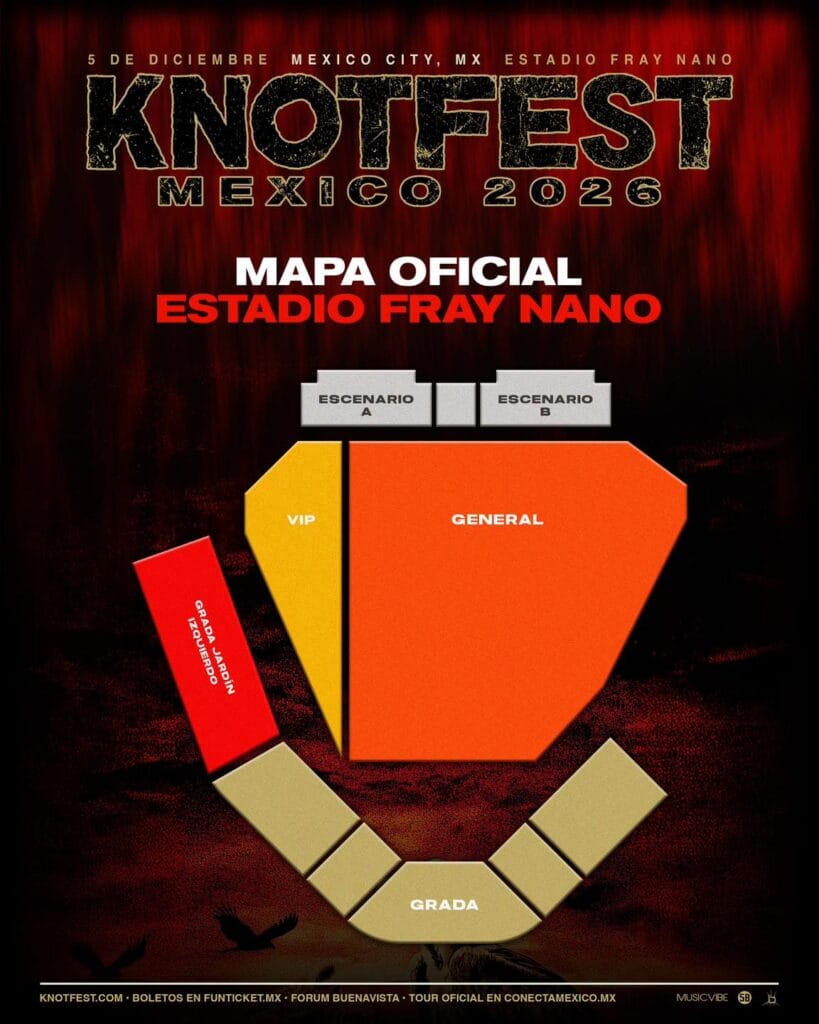 El Knotfest México 2026 ha revelado su alineación completa, consolidando su regreso para el sábado 5 de diciembre de 2026 en el Estadio Fray Nano de la Ciudad de Ciudad de México. Bajo la producción de MusicVibe, el festival contará con escenarios gemelos y una selección de bandas que abarca desde el metal core moderno hasta el death metal progresivo.