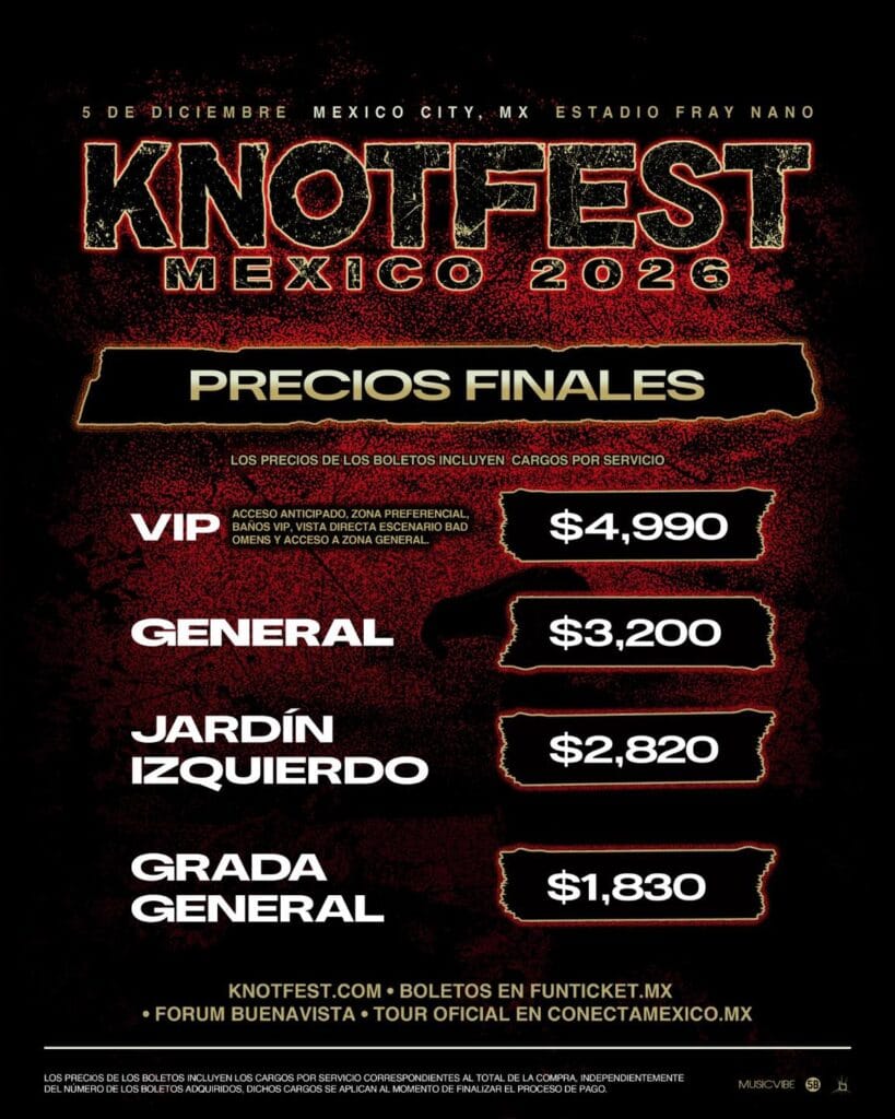 La venta de entradas para el Knotfest México 2026 iniciará el lunes 23 de marzo de 2026 a través de la plataforma funticket.mx. También se habilitará la taquilla física en Forum Buenavista para quienes busquen adquirir sus accesos de forma directa.
