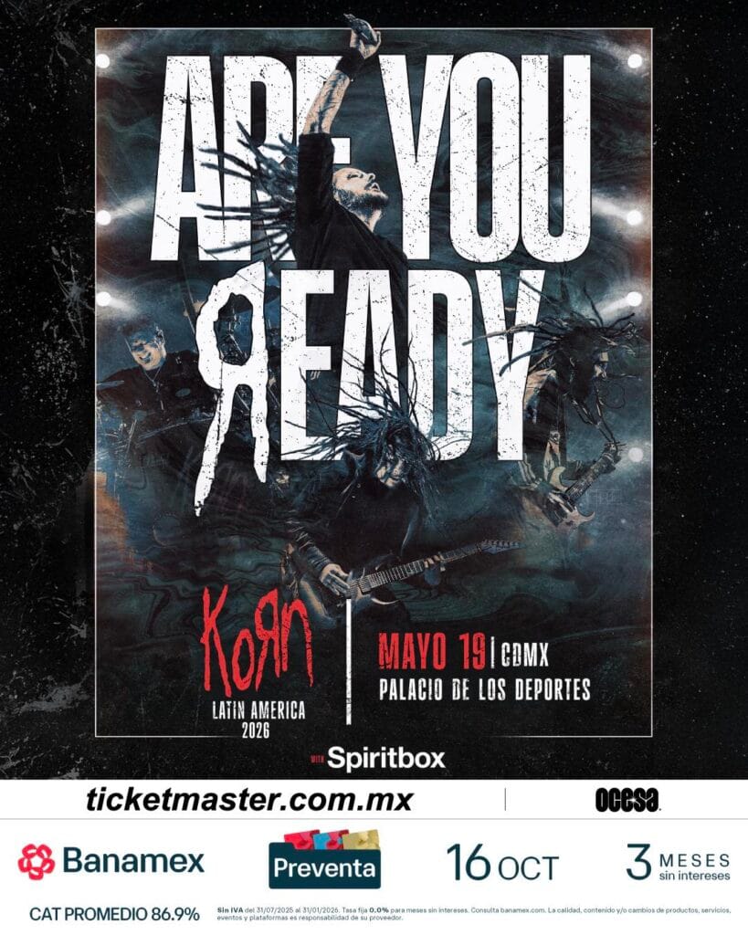 La gira de Korn por Latinoamérica, titulada «Are You Ready?», arranca el 2 de mayo en Bogotá, Colombia (Coliseo Medplus), y culmina el 19 de mayo en Ciudad de México, que espera 20.000 almas para un show de nu-metal que quedará para la historia, con himnos adolescentes que, tras años, siguen cautivando a nuevas generaciones.