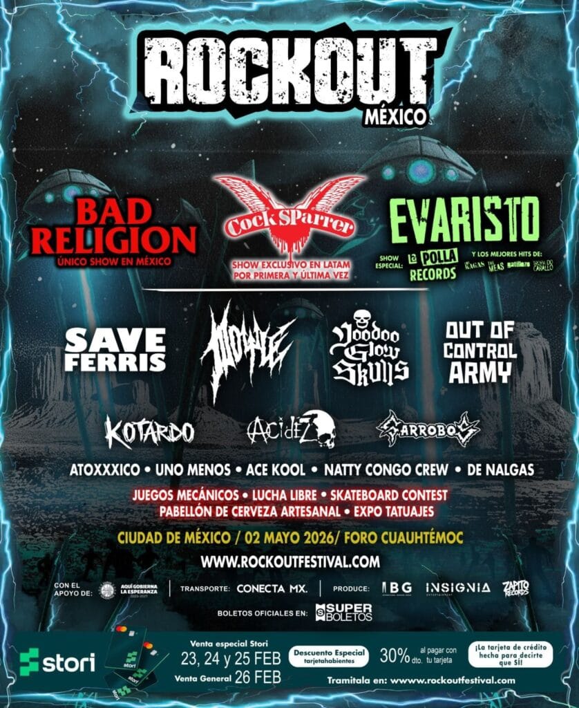El festival Rockout México ha revelado oficialmente el cartel para su primera edición en la capital del país. El próximo 02 de mayo, el Foro Cuauhtémoc se convertirá en el epicentro del punk mundial con una alineación que reúne a instituciones históricas del género. Este evento destaca por presentar el único show en territorio mexicano de Bad Religion, una de las bandas más influyentes del hardcore y el Punk.