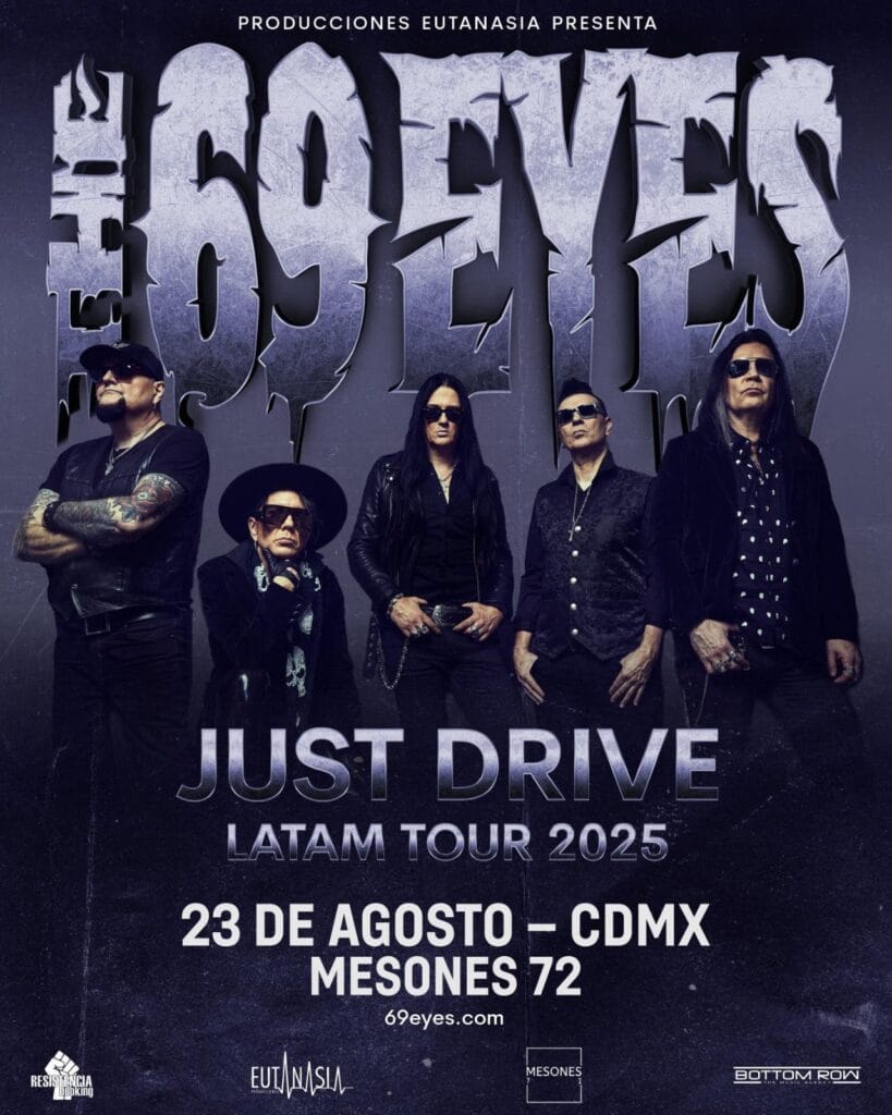 Los vampiros de Helsinki están de regreso. The 69 Eyes, la icónica banda finlandesa de goth n’ roll, ha anunciado su esperada gira Just Drive LATAM Tour 2025, que los traerá de vuelta a México para un concierto electrizante el 23 de agosto de 2025 en Mesones 72, ubicado en el corazón de la Ciudad de México.